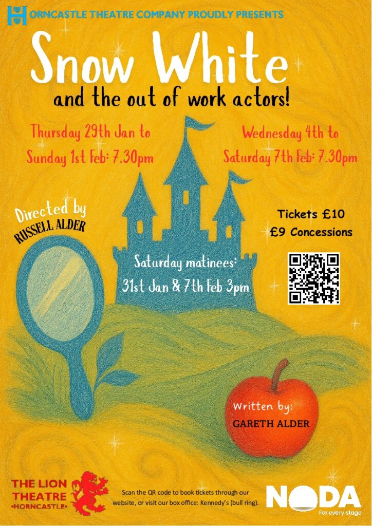 The Company is proud to present this year’s pantomime, Snow White and the Out-of-Work Actors – an original Horncastle pantomime by Gareth Alder, directed by Russell Alder.